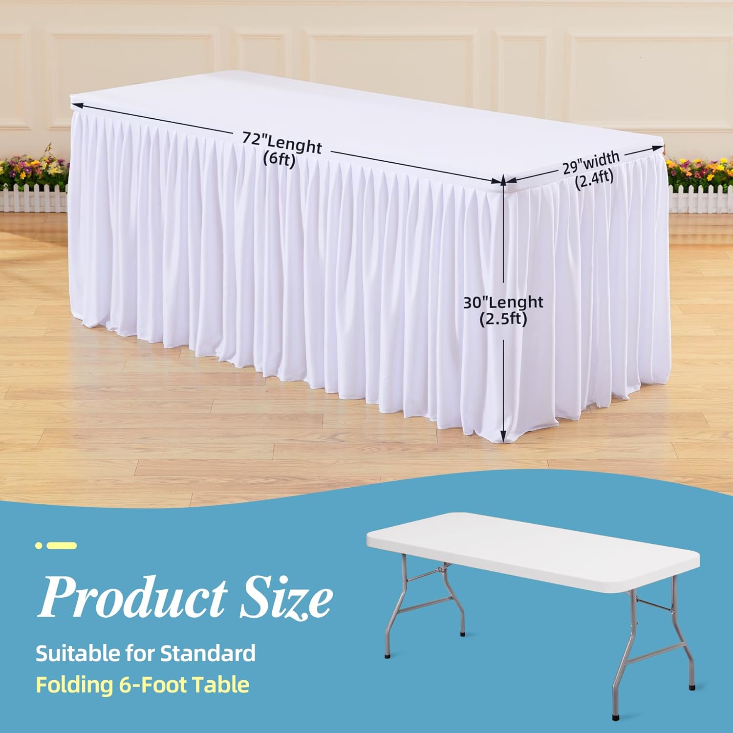 | Subject Character | Ruffle table skirt perfect for wedding reception, trade show, banquet,dessert cake table, buffet table, baby shower, vendor table and so on,it’s Flexible and can be used for a variety of uses. |