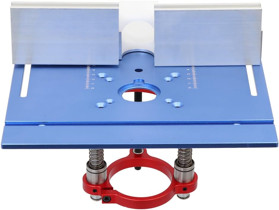 Material: Aluminum alloy (100% brand new)Color: BLUE+REDPanel size: 240 x 200 x 5mm (9.4 x 7.9 x 0.2in)Screw hole distance: 70x62 mm(2.76 x 2.44 in)/56x45 mm(2.2 x 1.77 in)Applicable trimming machine: universal type, suitable for trimming machines with motor diameters between 63.5~66mm (2.5-2.56 in)Package:1 * Router table insert plate1 * router lift mount,1 * Router fence1 * Miter gaugeseveral screw accessoriesNote:This product does not include the machine.Our goal is to create a comfortable shopping experience for customers. If you are not satisfied with our products, you can contact us at any time, and we will provide you with warm services.