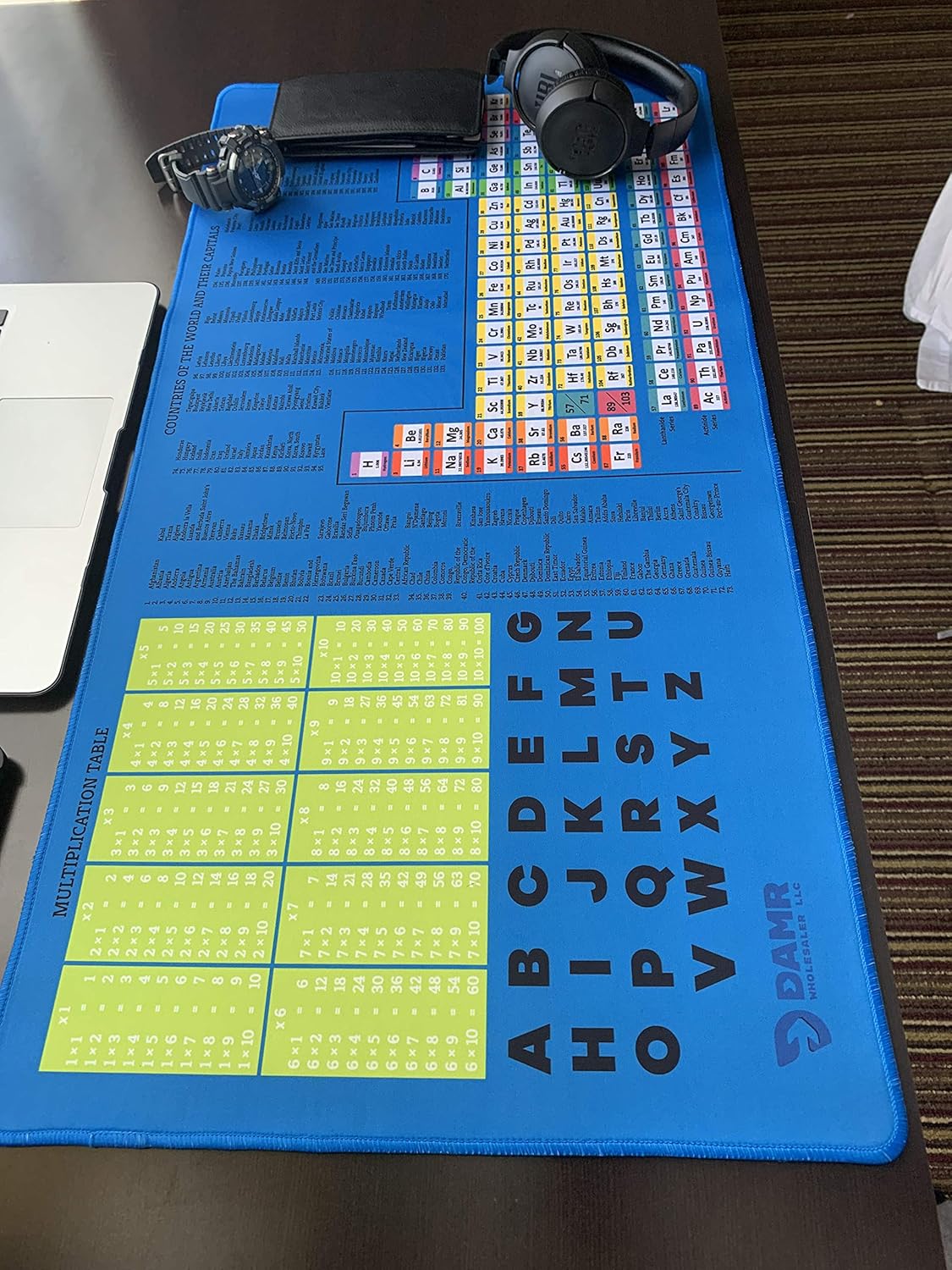 Mouse Mat, large Microfiber Mouse Pad, Non-Slip Desk Pad, Waterproof Desk Table Protector, Large Mouse Pad, Easy Clean Laptop Desk Writing Mat With Multiplication Table, ABC Alphabet, Periodic Table, Countries With Capitals, Desk Mat, Non-Slip rubber Mat, Laptop desk mat. size 31x16x0,1
